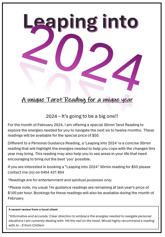My name is Jo and I am a Tarot Reader and Psychic. I work primarily with my guides while giving a Tarot reading relying on intuition when interpreting the cards to ensure the reading is relevant to your personal situation.